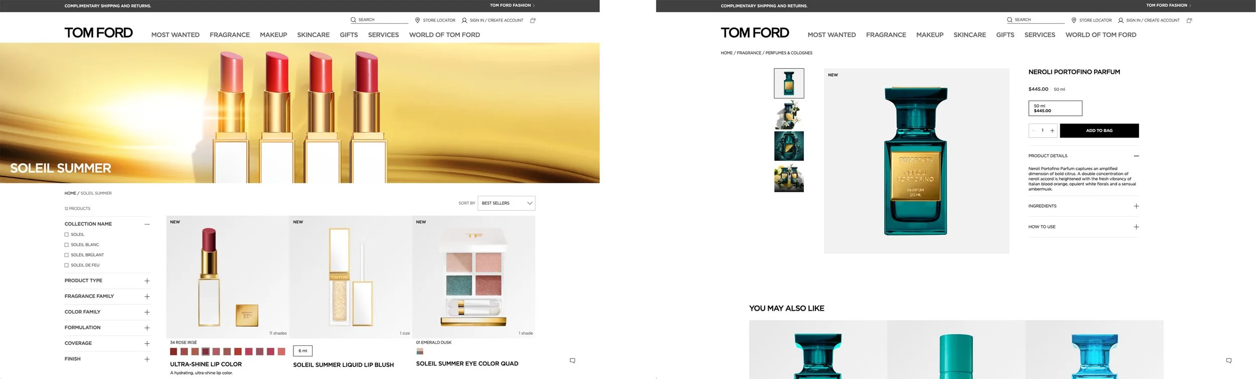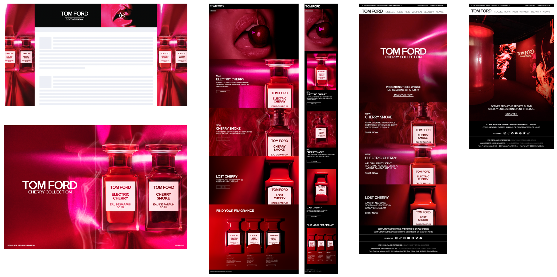 Tom Ford Beauty’s first standalone direct-to-consumer online experience - tomfordbeauty.com. This project spanned five years and successfully launched in 2024. I was the project lead for the brand creative team on 2D team, partnering closely with UI/UX online, marketing and dev teams. I presented final rounds to the SVP Creative, SVP Marketing and General Manager. This launch is the project I’m most proud of in my seven years with the brand, as it directly increased business and had high visibility with leadership.