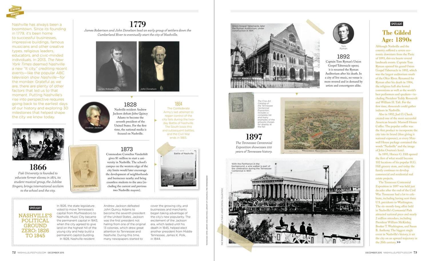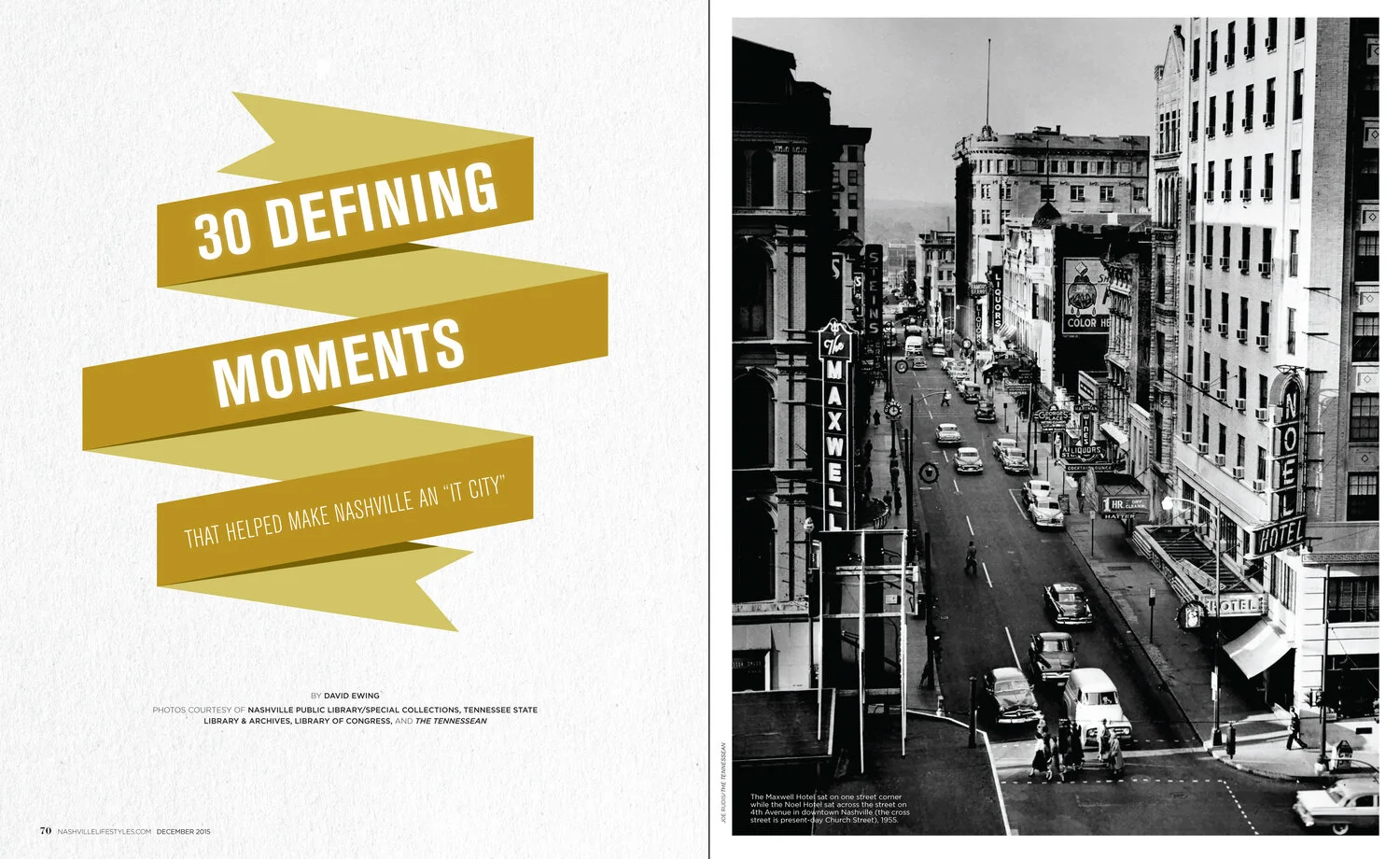 This was an editorial layout for a history story while at Nashville Lifestyles magazine. I was told by my to become manager at Tom Ford that this layout was what secured my job at TF - that it showed how I could take complex information and style the typography in a visually interesting and clean format. On this project, I partnered with a local historian who helped source imagery. This is just an excerpt but was a great project to work on!
