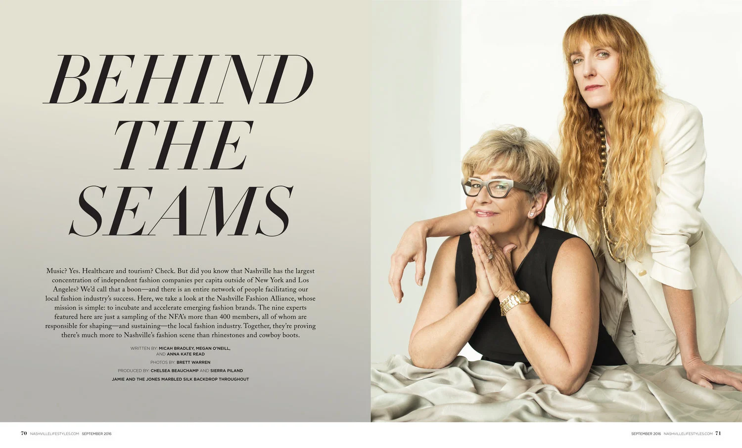 These are examples of fashion and beauty pages I designed, with supplied assets. At Nashville Lifestyles I also photographed the society events, which is an interest of mine.